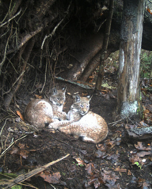 This post mainly consists of photos. The story is simple. In the late May of 2018 in Naliboki Forest here was discovered a lair of Eurasian lynx in the quite large treefall of several layer. Moreover, the treefall was overgrown with young trees and nowadays that is a very dense thicket, where it is impossible to walk, but only climb. The litter consisted of three kittens. When kittens got not so vulnerable to disturbance by human in the mid-autumn, we put several camera-traps in the treefall in suitable spots. Really interesting photos of the lynx family life were taken during the late autumn of 2018 and then during the winter. Also, we found out that adult male lynx, perhaps, the father of the kittens and one beautifully spotted subadult female lynx visited the treefall. Often the adult male visited the place in the late February and early March of 2019, waiting for the mother heat.
