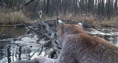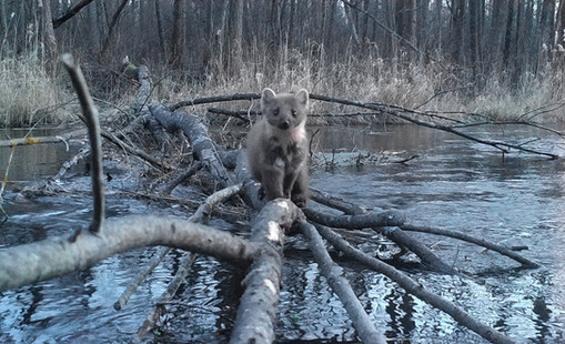 Пераход сысуноў па аднаму з дрэў, што павалілася паўз Шубіна-Нёманскі канал ва ўрочышчы Ліповіца, 2020 год.